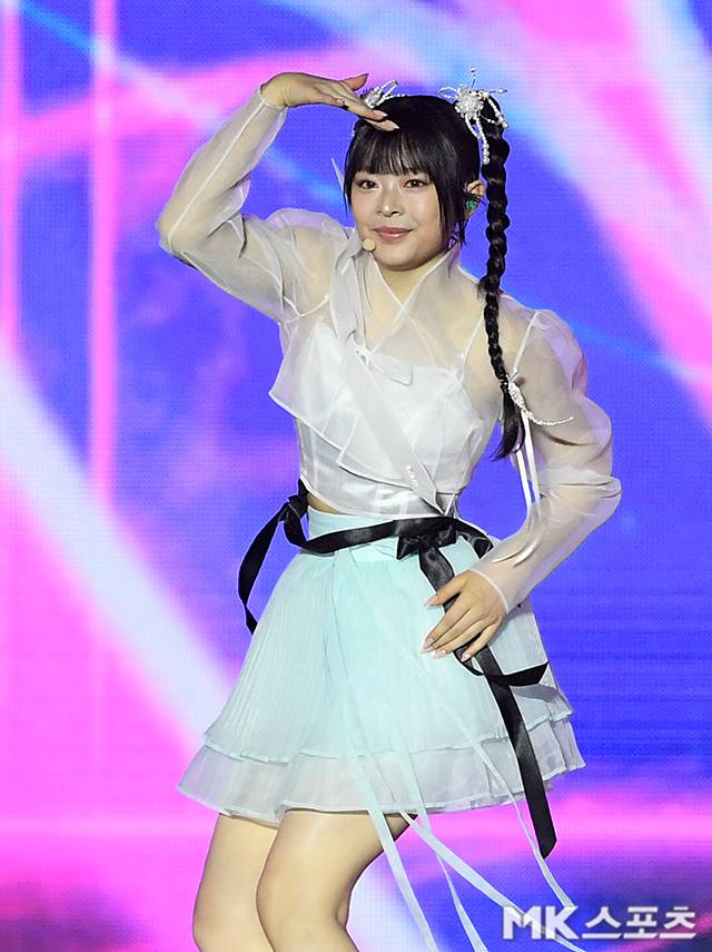뉴진스 하니가 공연을 펼치고 있다.