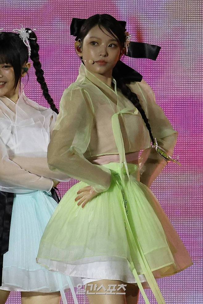 그룹 뉴진스 해린이 21일 오후 서울 종로구 경복궁 흥례문 광장 앞에서 열린 '코리아 온 스테이지' 공연에 참석해 멋진 무대를 선보이고 있다. 서병수 기자 qudtn@edaily.co.kr /2024.05.21/