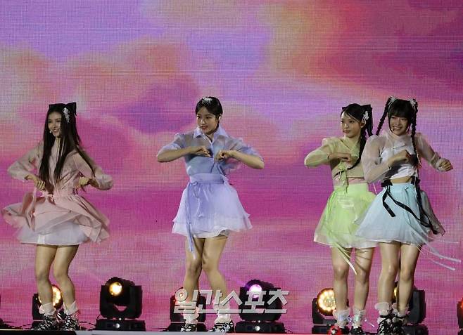 그룹 뉴진스가 21일 오후 서울 종로구 경복궁 흥례문 광장 앞에서 열린 '코리아 온 스테이지' 공연에 참석해 멋진 무대를 선보이고 있다. 서병수 기자 qudtn@edaily.co.kr /2024.05.21/