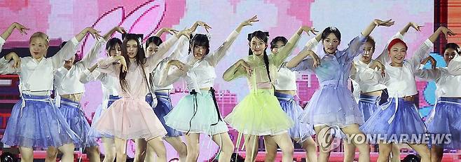 (서울=연합뉴스) 진연수 기자 = 걸그룹 뉴진스가 21일 오후 서울 경복궁 흥례문 광장에서 국가유산청 출범을 기념해 열린 '2024 코리아 온 스테이지 - 뉴 제레이션' 공연에서 무대를 선보이고 있다. 2024.5.21