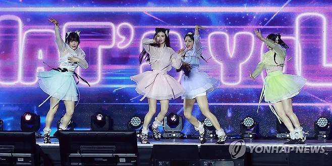 (서울=연합뉴스) 진연수 기자 = 걸그룹 뉴진스가 21일 오후 서울 경복궁 흥례문 광장에서 국가유산청 출범을 기념해 열린 '2024 코리아 온 스테이지 - 뉴 제레이션' 공연에서 무대를 선보이고 있다. 2024.5.21