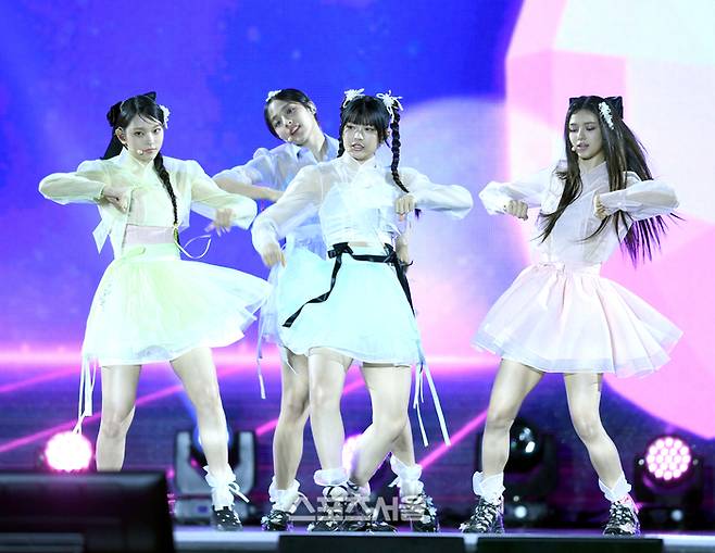 뉴진스가 21일 서울 경복궁에서 열린 ‘코리아 온 스테이지’에서 공연을 하고 있다.