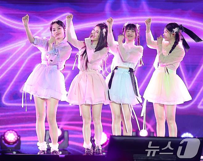 (서울=뉴스1) 김진환 기자 = 걸그룹 뉴진스가 21일 오후 서울 종로구 경복궁 흥례문 광장에서 열린 ‘2024 국가유산 방문 캠페인 : ‘코리아 온 스테이지’ 무대에서 열정적인 공연을 펼치고 있다.