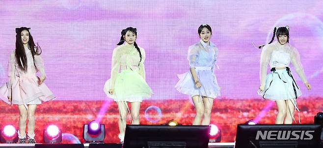 [서울=뉴시스] 김근수 기자 = 걸그룹 뉴진스가 21일 서울 종로구 경복궁에서 열린 ‘2024 국가유산 방문 캠페인 : ‘코리아 온 스테이지’ 무대에서 공연을 펼치고 있다. 2024.05.21. ks@newsis.com