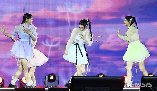 [서울=뉴시스] 김근수 기자 = 걸그룹 뉴진스가 21일 서울 종로구 경복궁에서 열린 ‘2024 국가유산 방문 캠페인 : ‘코리아 온 스테이지’ 무대에서 공연을 펼치고 있다. 2024.05.21. ks@newsis.com