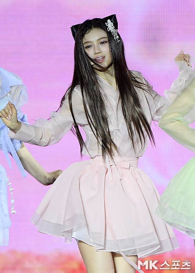 뉴진스 다니엘이 공연을 펼치고 있다.