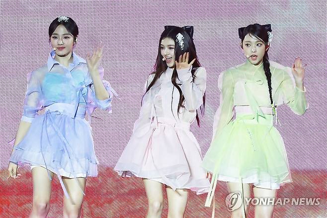(서울=연합뉴스) 진연수 기자 = 그룹 뉴진스가 21일 오후 서울 경복궁 흥례문 광장에서 국가유산청 출범을 기념해 열린 '2024 코리아 온 스테이지 - 뉴 제레이션' 공연에서 무대를 선보이고 있다. 2024.5.21