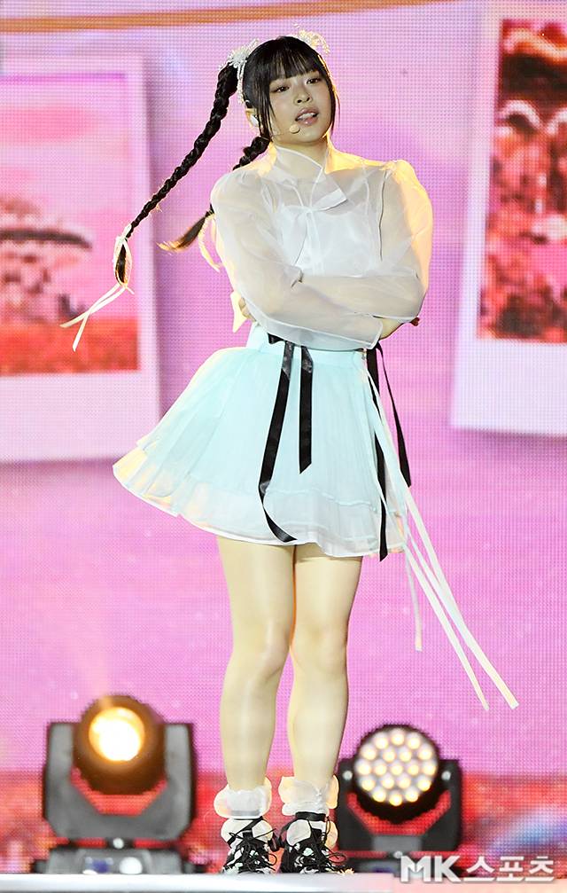 뉴진스 하니가 공연을 펼치고 있다.