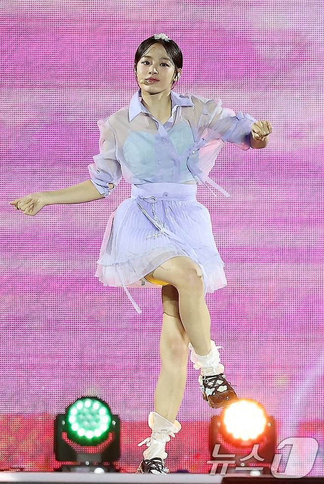 (서울=뉴스1) 김진환 기자 = 걸그룹 뉴진스 민지가 21일 오후 서울 종로구 경복궁 흥례문 광장에서 열린 ‘2024 국가유산 방문 캠페인 : ‘코리아 온 스테이지’ 무대에서 열정적인 공연을 펼치고 있다.