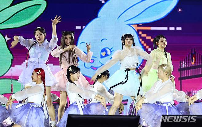 [서울=뉴시스] 김근수 기자 = 걸그룹 뉴진스가 21일 서울 종로구 경복궁에서 열린 ‘2024 국가유산 방문 캠페인 : ‘코리아 온 스테이지’ 무대에서 공연을 펼치고 있다. 2024.05.21. ks@newsis.com