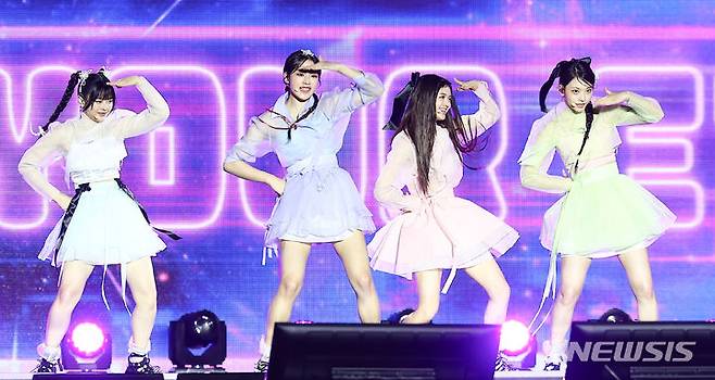 [서울=뉴시스] 김근수 기자 = 걸그룹 뉴진스가 21일 서울 종로구 경복궁에서 열린 ‘2024 국가유산 방문 캠페인 : ‘코리아 온 스테이지’ 무대에서 공연을 펼치고 있다. 2024.05.21. ks@newsis.com
