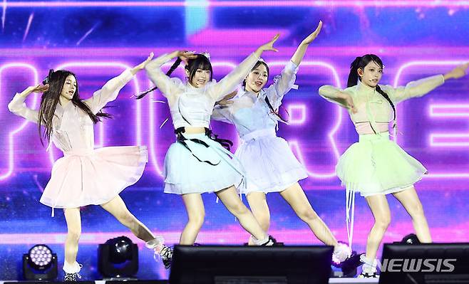 [서울=뉴시스] 김근수 기자 = 걸그룹 뉴진스가 21일 서울 종로구 경복궁에서 열린 ‘2024 국가유산 방문 캠페인 : ‘코리아 온 스테이지’ 무대에서 공연을 펼치고 있다. 2024.05.21. ks@newsis.com