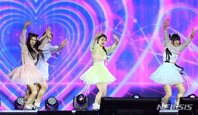 [서울=뉴시스] 김근수 기자 = 걸그룹 뉴진스가 21일 서울 종로구 경복궁에서 열린 ‘2024 국가유산 방문 캠페인 : ‘코리아 온 스테이지’ 무대에서 공연을 펼치고 있다. 2024.05.21. ks@newsis.com