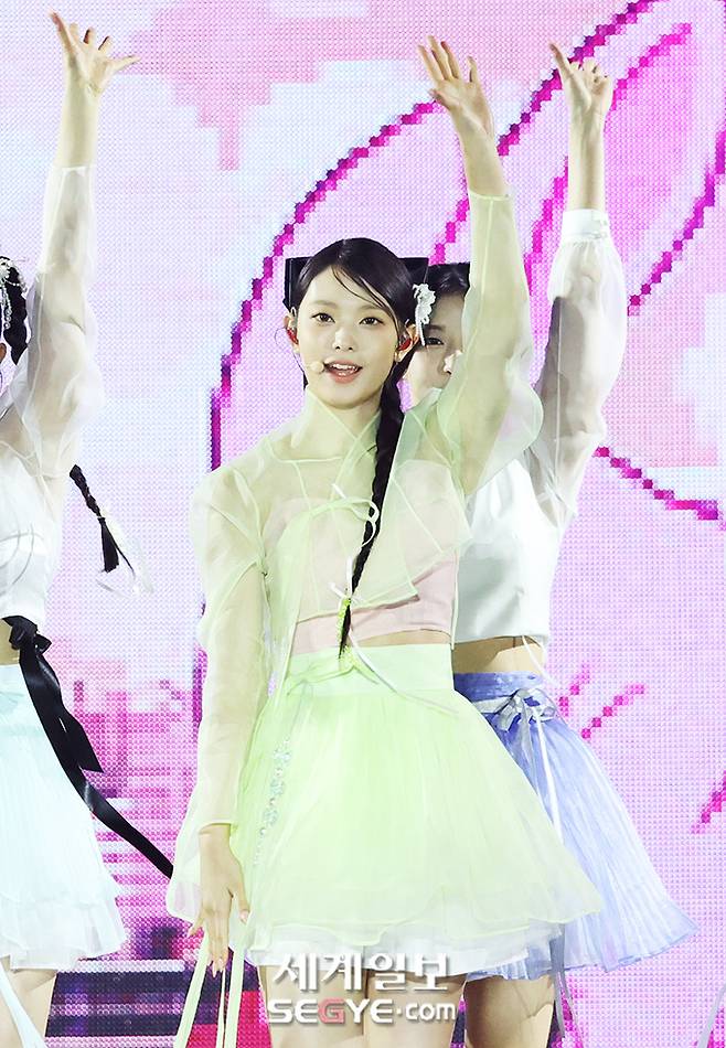 국가유산청이 주최하고 국가유산진흥원과 KBS한국방송이 주관하는 '2024 코리아 온 스테이지-뉴 제너레이션'(이하 '코리아 온 스테이지')이 21일 오후 서울 종로구 경복궁 흥례문 앞 특설무대에서 개최됐다. 그룹 뉴진스 해린이 축하 무대를 펼치고 있다.