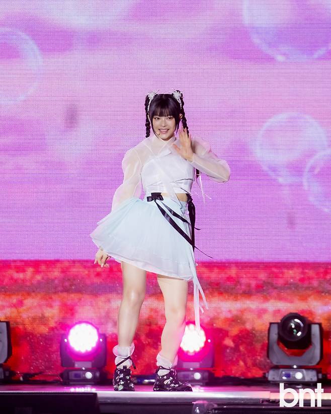 뉴진스 하니가 멋진 공연을 선보이고 있다.