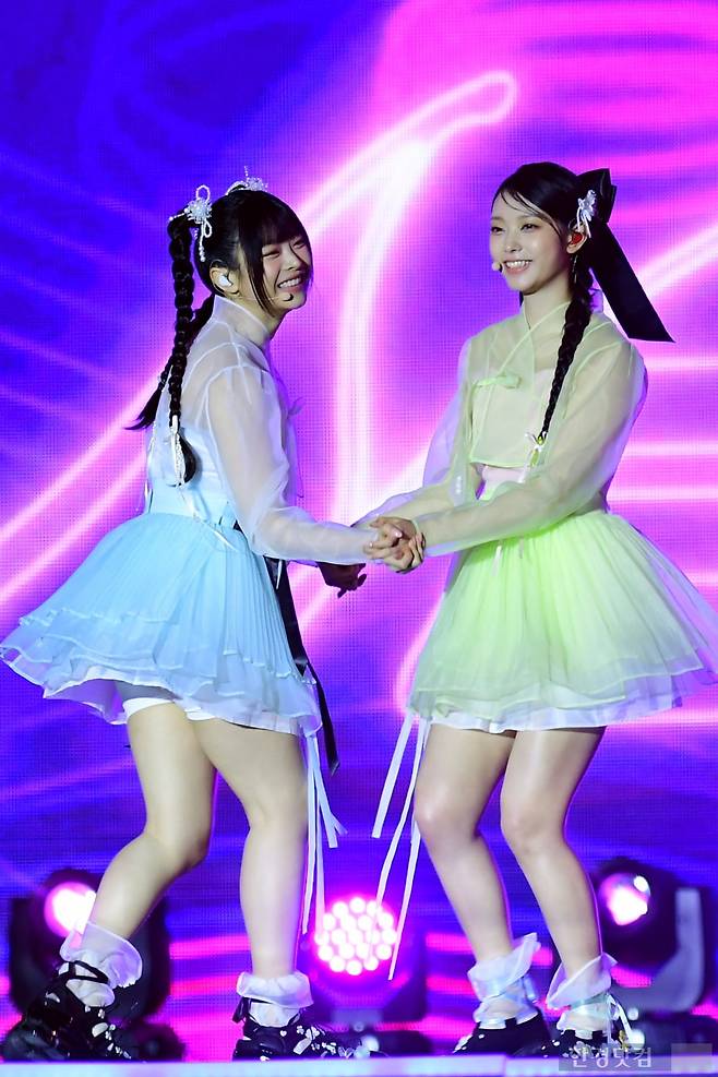 그룹 뉴진스 하니, 해린이 21일 오후 서울 종로구 경복궁 흥례문 광장에서 열린 ‘2024 코리아 온 스테이지’에 참석해 공연을 펼치고 있다.