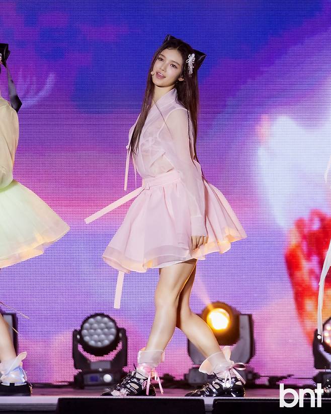 뉴진스 다니엘이 멋진 공연을 선보이고 있다.