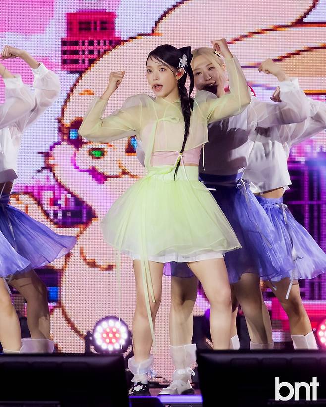 뉴진스 해린이 멋진 공연을 선보이고 있다.