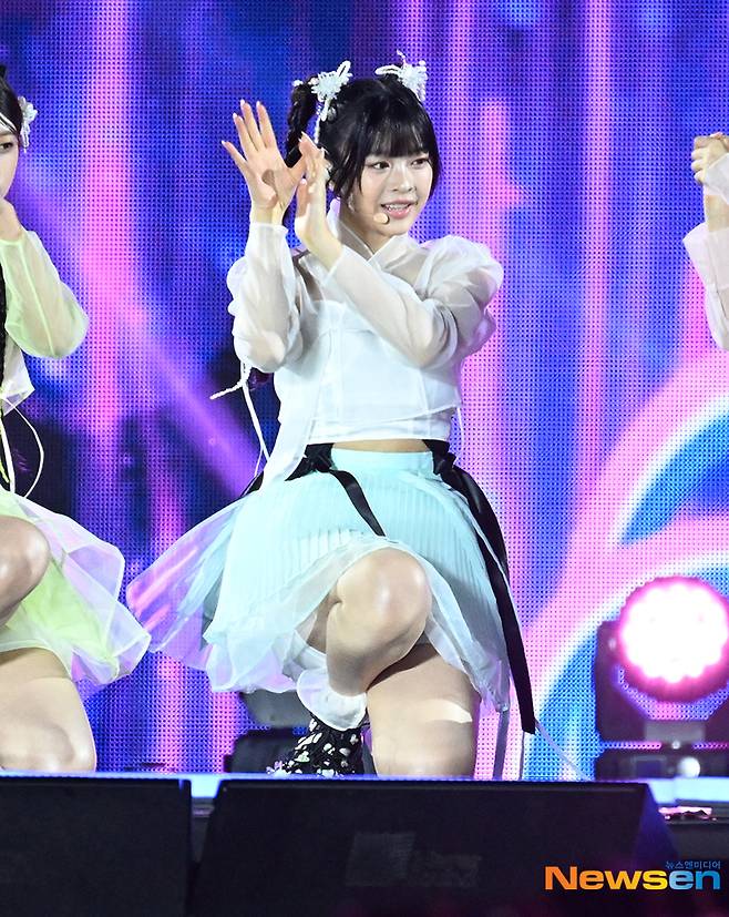 걸그룹 뉴진스가 5월 21일 오후 서울 종로구 경복궁 흥례문 광장에서 열린 국가유산 방문 캠페인 홍보대사 위촉식 및 코리아 온 스테이지에 참석해 무대를 펼치고 있다.