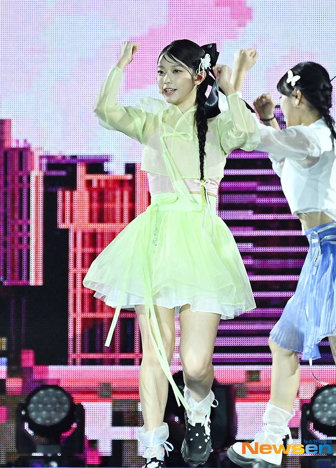 걸그룹 뉴진스가 5월 21일 오후 서울 종로구 경복궁 흥례문 광장에서 열린 국가유산 방문 캠페인 홍보대사 위촉식 및 코리아 온 스테이지에 참석해 무대를 펼치고 있다.