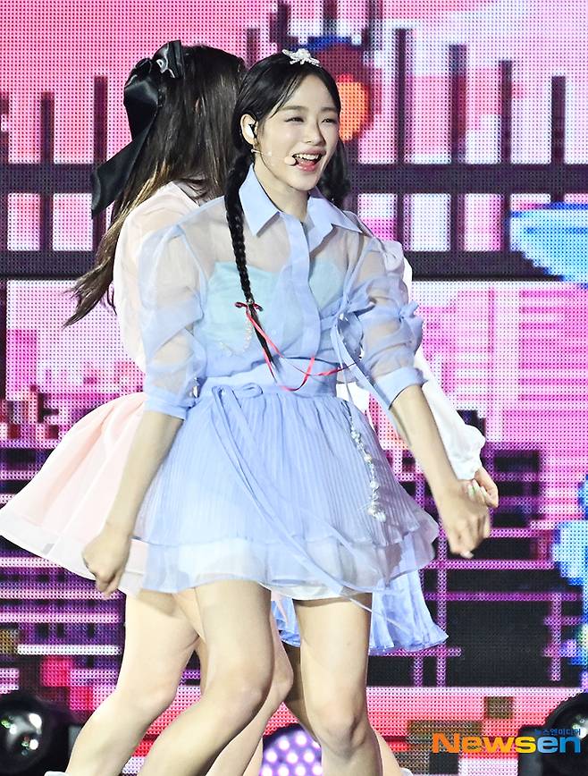 걸그룹 뉴진스가 5월 21일 오후 서울 종로구 경복궁 흥례문 광장에서 열린 국가유산 방문 캠페인 홍보대사 위촉식 및 코리아 온 스테이지에 참석해 무대를 펼치고 있다.