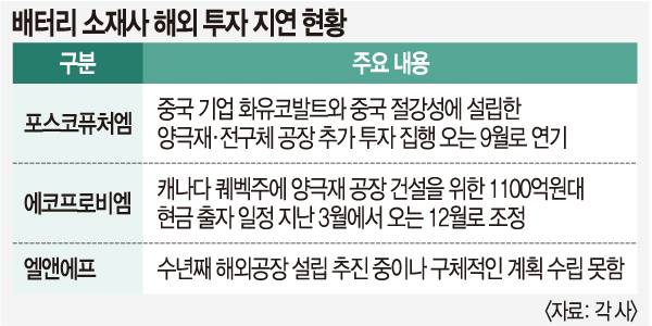 배터리 소재 기업들이 업황 '보릿고개'를 넘으면서 해외 투자를 주저하고 있다.