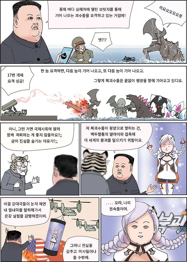 〈시사IN〉 대표 콘텐츠. 시사와 ‘서브컬처’라는 생소한 조합을 선보여 수많은 마니아층을 거느린 굽시니스트가 선보이는 통쾌·유쾌·상쾌 시사만화입니다.