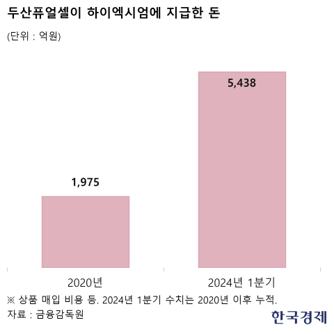 IPO를 추진 중인 하이엑시엄의 기업가치를 올리기 위해 판매하지 못한 수천억원 규모의 재고를 두산퓨얼셀이 받아줬다는 것이다.