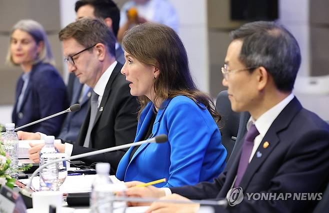 (서울=연합뉴스) 김도훈 기자 = 영국 과학혁신기술부 미셸 더넬란 장관이 22일 오후 서울 성북구 한국과학기술연구원(KIST)에서 열린 'AI 서울 정상회의' 장관 세션에서 개회사를 하고 있다. 2024.5.22
