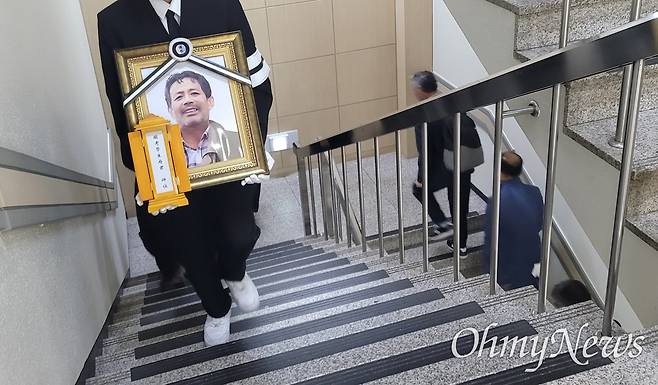 | ▲ 22일 오전 7시 30분 경기도 부천시의 한 장례식장에서 고 김성환 삼성일반노조 위원장의 발인이 치러졌다. 김 위원장은 지난 19일 사망했다. |