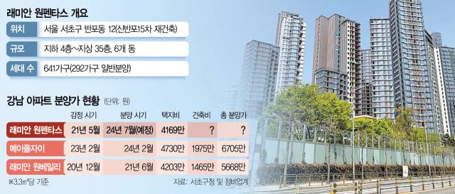 서울 서초구 반포 ‘래미안 원펜타스’ 조합이 진퇴양난에 빠졌다. 택지비 감정평가를 너무 일찍 받은 탓에 일반 분양가가 예상보다 낮게 책정될 것으로 예상되는 데다 대안으로 거론되는 ‘임대 후 분양’도 현행법상 불가능하기 때문이다.