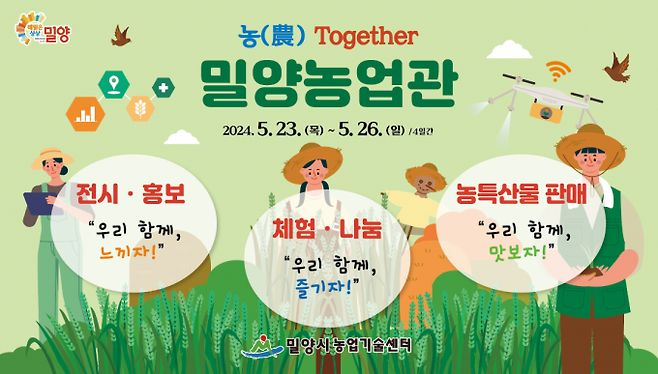 밀양농업관은 크게 전시·홍보, 체험·나눔, 판매마당으로 꾸며지며 다양한 이벤트도 진행될 예정이다.