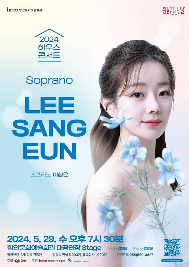 함안문화예술회관은 5월 문화가 있는 날을 맞아 열리는 하우스콘서트에서 소프라노 이상은의 무대를 오는 29일 오후 7시30분 함안문화예술회관 대공 연장 스테이지에서 선보인다.