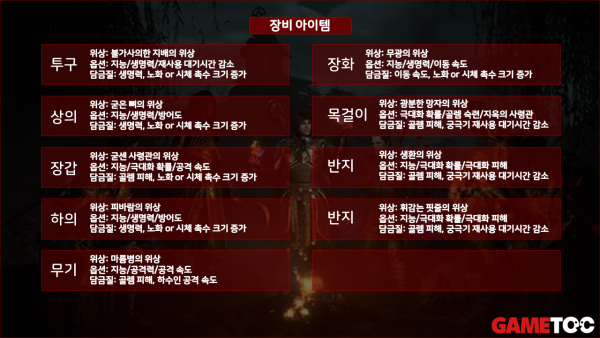 보석 : 무기(에메랄드), 방어구(루비), 장신구(해골)