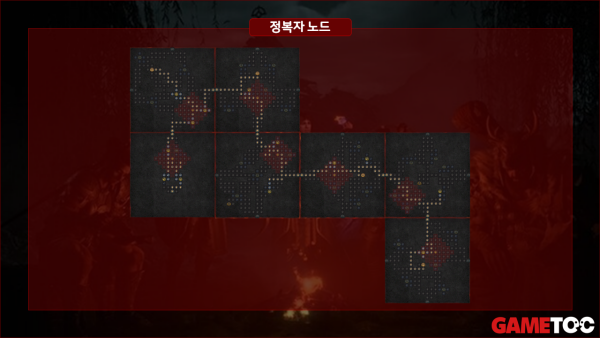 정복자 보드 순서 및 문양 : 시작(증폭) - 이교 우두머리(망자 사육사) - 식인(유체) - 뼈 이식(통제) - 죽음의 냄새(정수) - 피바다(세력권) - 거대한 괴수(골렘)