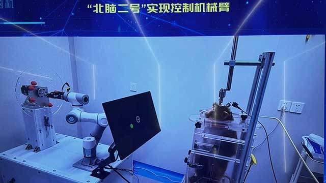 중국 뇌과학연구소는 최근 뉴사이버를 이용해 손이 묶인 원숭이가 생각만으로 로봇 팔을 조종해 딸기를 잡게 하는 데 성공했다고 밝혔습니다.