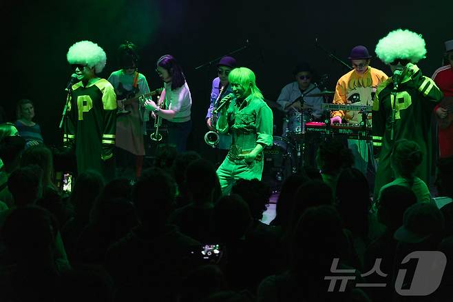 (파리=뉴스1) 이준성 기자 = 22일(현지시간) 프랑스 파리 주프랑스 한국문화원(원장 이일열)에서 ‘한국의 놀이’ 특별 기획전이 열려 소리꾼 이희문의 ‘오방신과’ 밴드가 개막 공연을 펼치고 있다.