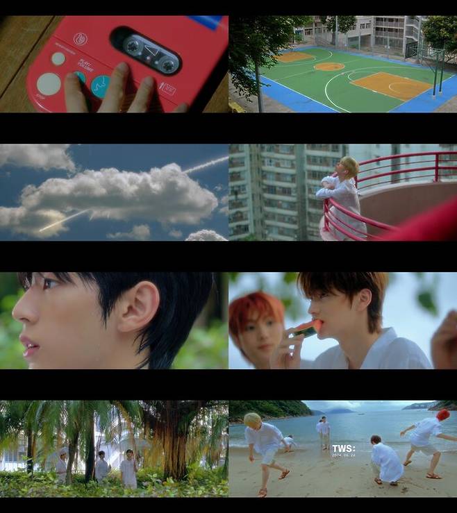 이내 TWS 멤버들이 하나 둘 등장해 싱그럽고 청량한 여름 풍경과 교차된다. 비를 맞으며 하늘을 올려다보거나 교정을 거니는 모습, 수박을 크게 한 입 베어무는 소년의 얼굴이 해맑다.