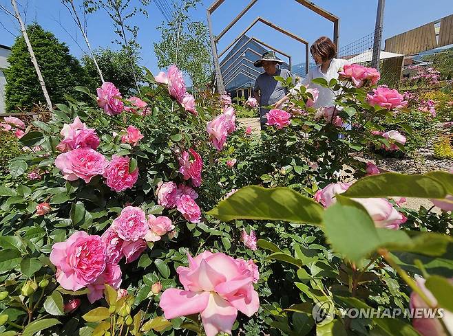 (원주=연합뉴스) 이재현 기자 = 제22회 장미축제 개막(29일)을 일주일여 앞둔 23일 원주시 문막읍 궁촌리의 한 장미화원에 장미가 활짝 피었다. 원주시의 꽃 장미를 주제로 한 장미축제는 29일부터 6월 2일까지 단계동 장미공원 일원에서 열린다. 2024.5.23