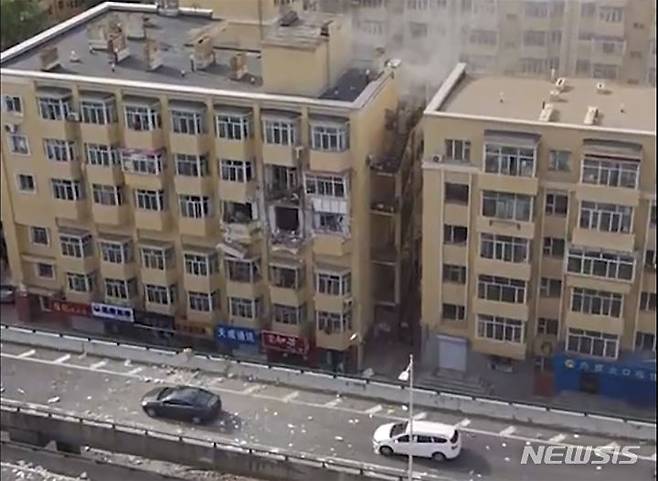 [하얼빈=AP/뉴시스] 23일(현지시각) 중국 헤이룽장성 하얼빈의 한 아파트에서 발생한 폭발로 건물이 파손돼 있다. 현지 당국은 이날 오전 가스탱크가 터진 것으로 추정되는 폭발이 일어나 1명이 숨지고 3명이 다쳤다고 밝혔다. 2024.05.23.