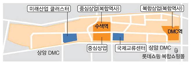 지하철 6호선 DMC역 용지인 13구역이 가장 눈길을 끈다. 이곳을 상업·문화·오락이 어우러진 복합시설로 조성하는 것이 목표다. 바로 옆 롯데 복합쇼핑몰 개발과 연계할 계획이다. 경의중앙선 수색역 용지(12구역)는 상업·예술·공연 기능을 한데 모은 공간으로 만든다. 전체 면적의 30% 이상을 문화·집회시설로 쓰도록 권고했고 공연문화지원센터도 건립한다.