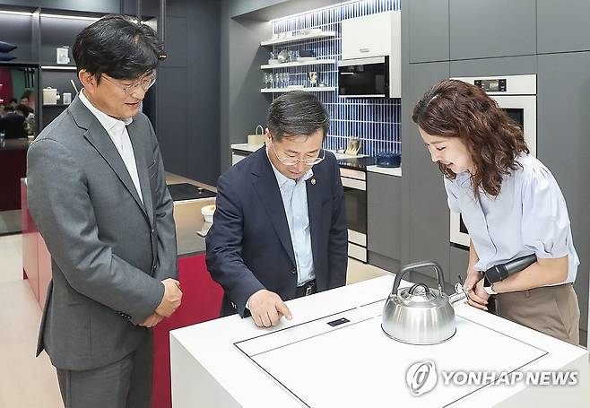 (서울=연합뉴스) 강경성 산업통상자원부 1차관이 23일 경기 수원시 삼성전자 디지털시티를 방문해 스마트홈 체험관을 둘러보고 있다. 2024.5.23 [산업통상자원부 제공. 재판매 및 DB 금지]