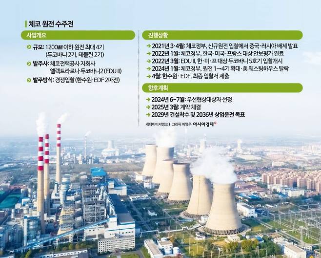 당초 체코 원전 수주전에는 한국과 중국, 러시아, 미국, 프랑스 등 5국이 참여할 것으로 예상됐지만, 2021년 체코 정부는 중국·러시아를 안보 문제로 입찰에서 배제했다. 올 초 미국의 웨스팅하우스도 법적 구속력이 있는 제안서를 내지 못해 탈락하면서 최종적으로 한국과 프랑스의 2파전이 됐다.