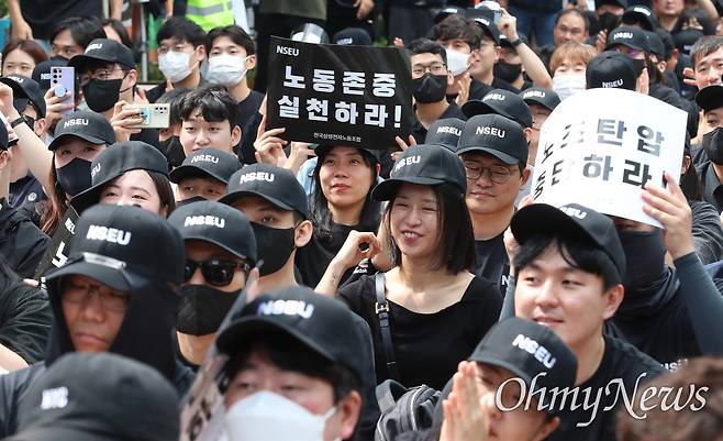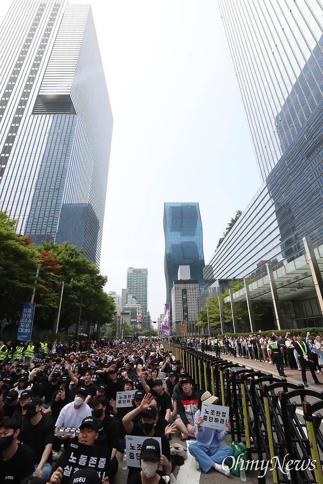 | ▲ 전국삼성전자노동조합이 24일 오후 서울 서초구 삼성전자 서초사옥 앞에서 '전국삼성전자노동조합 5.24 가자! 서초로! 문화행사'를 개최했다. |