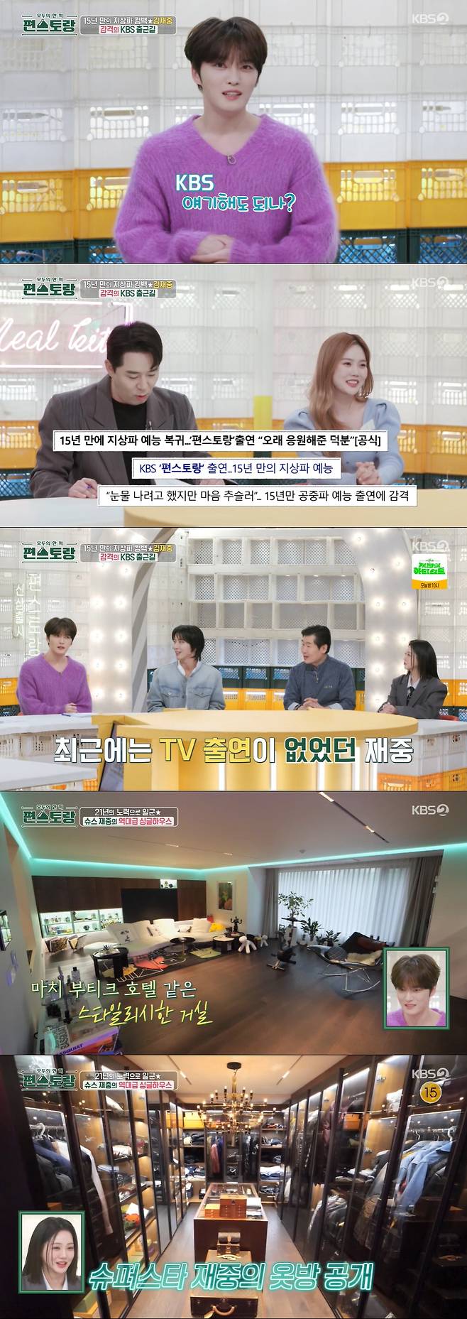 15년 만에 지상파 방송에 출연한 김재중은 "KBS... 얘기해도 하나? 저는 꼭 얘기하고 싶었다. KBS 편스토랑 시청자 여러분들. 안녕하세요. 김재중입니다"라고 인사했다.