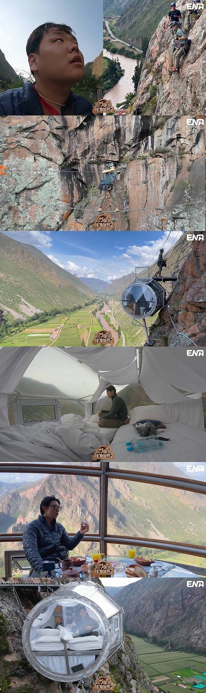 제작진에 따르면 ‘꽉기영’ 팀 곽튜브와 강기영은 페루 ‘나라카드’의 숙소 제공 혜택으로 뽑은 ‘오얀타이탐보’의 절벽 호텔로 향한다. 122m 높이의 절벽에 자리 잡은 이 호텔은 오로지 암벽 등반으로만 체크인을 할 수 있어 ‘세상에서 가장 괴팍한 숙소’로 알려진 곳. 그러나 1박 100만 원이라는 높은 가격에도 액티비티와 짜릿한 스릴을 즐기는 전 세계 여행객들에게는 ‘꿈의 숙소’라 불린다.