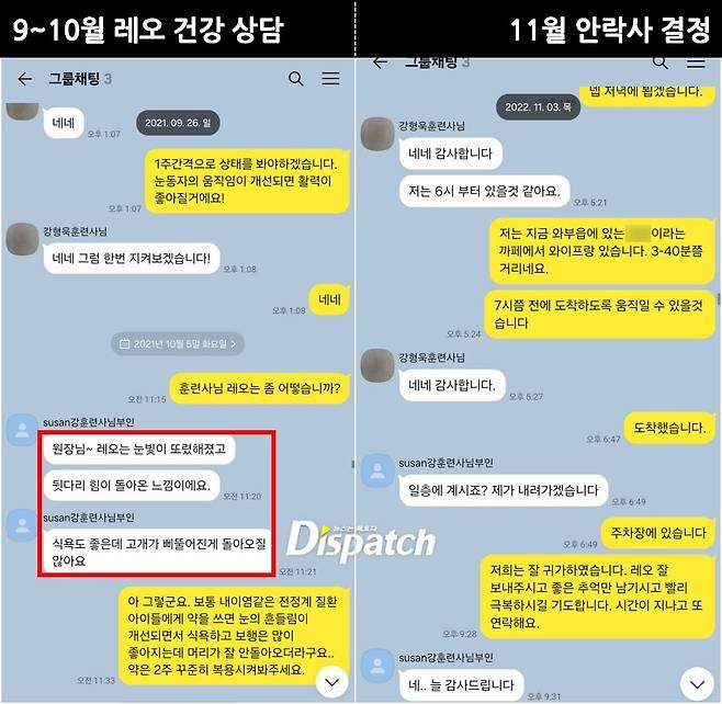 ③ 안락사 : 강형욱은 2022년 6월부터 안락사를 고민했다. 다음은, 담당 수의사가 '디스패치'에 전한 카톡이다.