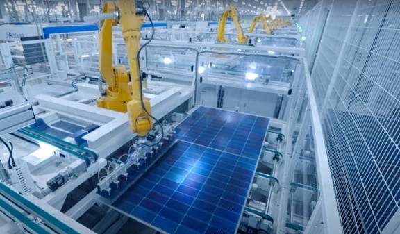 '지난달 말 찾은 중국 상해의 ‘JA 솔라’ 태양광 모듈(패널) 공장. 동방명주와 와이탄으로 유명한 상해 중심가에서 남서쪽으로 1시간 30분 가량 떨어진 이 공장에선 수백개의 자동화 로봇과 로봇을 보조하는 1200명의 직원들이 태양광 모듈을 조립하고 있었다. 글로벌 태양광 모듈 생산 최상위 4개 업체중 한곳인 JA 솔라가 지난해 상해, 허베이, 안후이 등에서 출하한 모듈은 약 60~65GW. 지난 한해 전세계에서 만들어진 태양광 모듈의 약 15% 수준이다. 매출 815.5억 위안(약 15.3조원), 영업이익 102.3억 위안(1.9조원)을 기록했다. 지난해 JA솔라를 포함한 중국업체들의 생산 점유율은 80%였다.