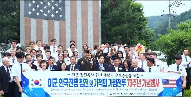 '미국 한국전쟁참전 및 기적의 가평전투 73주년 기념행사'가 지난 24일 가평 북면의 한국전쟁 미군참전 기념비 현장에서 개최됐다.