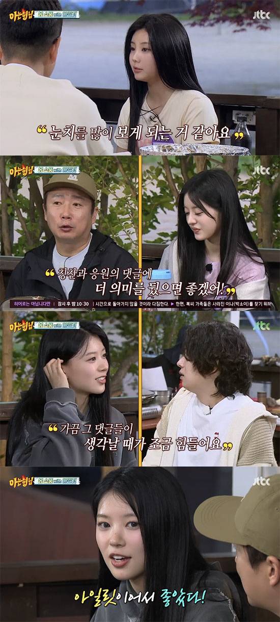 그런가 하면, 아일릿은 "데뷔하니 막상 힘든 게 많지 않냐"는 질문에, 고민을 털어 놓았다. 원희는 "저는 눈치를 많이 보게 되는 거 같다. 제가 연습생 생활도 짧았다. 실수할 때도 많다"고 이야기했다.